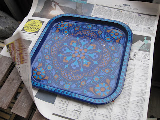 En bakke. Jeg har spraymalet en gammel bakke sort.